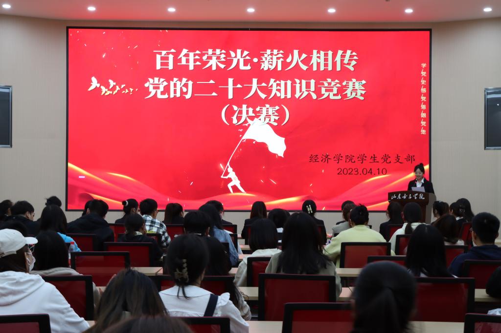 为深入学习宣传贯彻党的二十大精神,近日,经济学院学生党支部举办了“百年荣光·薪火相传”党的二十大精神专题知识竞赛决赛。经济学院辅导员、部分学生党员、入党积极分子和2022级部分学生参加了竞赛活动。
