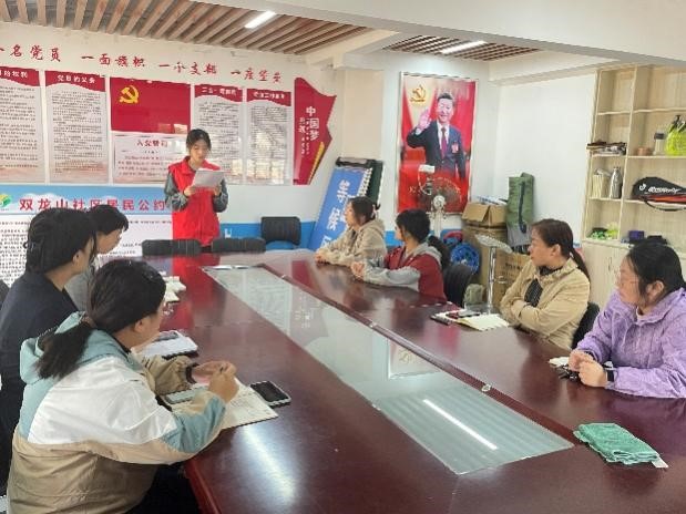 为持续深入学习宣传贯彻党的二十大精神,落实《山东女子学院“同上一堂思政大课”共读<习近平走进百姓家>活动方案》。4月20日下午,会计学院蓝翼演讲协会3名宣讲员和“会小青”15名志愿者在世界读书日来临之际,走进长清区常春藤社区和双龙山社区开展《习近平走进百姓家》读书宣讲活动。