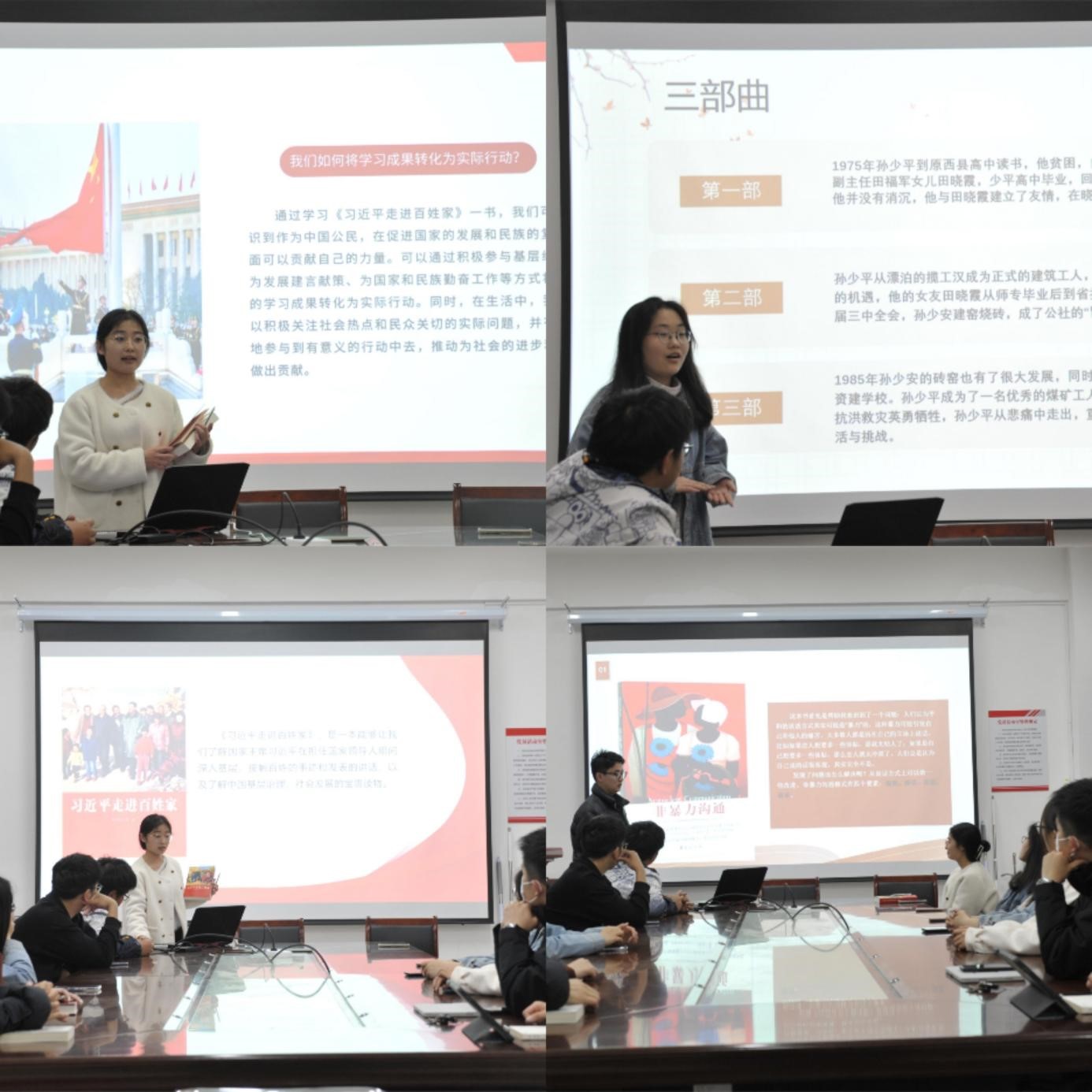 活动伊始,21级人工智能(校企)的张洁同学以“沿着领袖足迹,砥砺奋进前行”为主题,讲述了自己阅读《习近平走进百姓家》的读书体会,结合自身学习和生活经历,谈感受、话感恩、悟真理,真切感悟习近平总书记的人民情怀。紧接着,来自20级软件工程的秦勇、21级人工智能(校企)的陈俊竹和21级计算机应用(校企)的何金旭三名同学分别为大家分享了《非暴力沟通》、《平凡的世界》和《被讨厌的勇气》三本书籍。三本书的内容既积极向上,又贴近生活,三位同学既谈了对书籍的客观评价,又结合自身经历畅谈阅读感悟,让同学们在紧张的专业学习、繁忙的代码敲击之余,体味读书带来的乐趣。活动最后,大家开展自由讨论,分享阅读时的心得感悟以及自己最近所读书籍的精选语段,相互学习,共同成长。