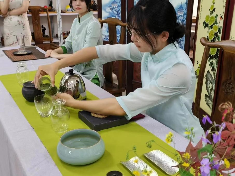 4月20日下午,大学生茶道艺术团在求新楼302茶室举办了以“谷雨品春,雅韵留香”为主题的茶会雅集。茶会由旅游学院团总支主办,大学生茶道艺术团指导教师、全体成员和学校茶文化爱好者参与了本次活动。
