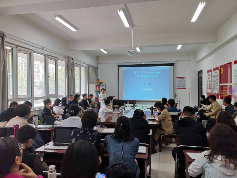 于谦老师首先对医学图像分割的特点及其所面临的挑战做出介绍,然后阐释了迁移学习应用于医学图像分割领域所涉及的关键技术和方法,重点分析了该领域今后的发展方向,最后就大模型对医学图像分析领域的影响跟学院的教师们进行了探讨。