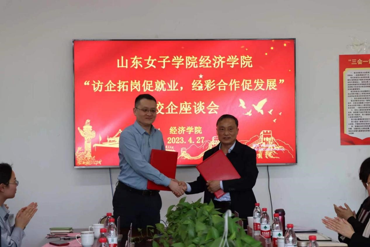 此次座谈会,经济学院与济南农商银行、戈尔特西斯科技有限公司顺利签署实习就业基地协议书、校外实践基地协议书,并举行授牌仪式,初步达成校企合作意向,为后续进一步拓宽就业合作渠道,构建毕业生就业供需对接的长效机制建立良好开端。