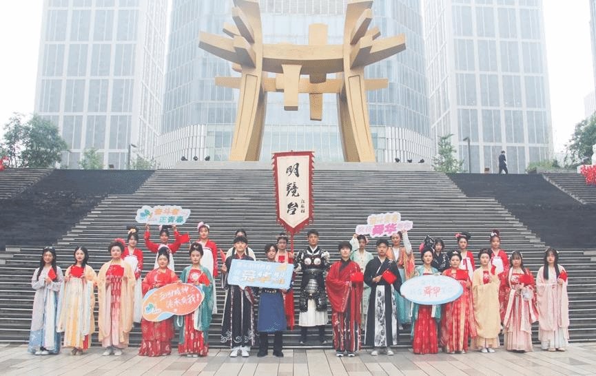 在舜华路街道办,“明镜台汉服社”以“快闪”的形式来纪念五四青年节,接地气的同时彰显青春本色。随着优美欢快的旋律在汉峪金谷云鼎大厦前响起,汉服快闪表演精彩开启,为过往行人带来一场传统与现代、古韵与青春碰撞的文化盛宴。踏着优美的旋律,20余名身着各式精美汉服的青年,共同演绎了一段段华美的汉服表演,向大家传播中华传统文化,展示传统汉服魅力。他们特有的青春与朝气、动感与活力感染了周围所有人,大家纷纷拿起手机拍照,现场一片青春洋溢。