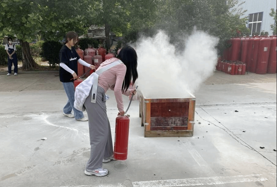 在消防企业负责人和技术员的带领下,志愿者们首先参观了干粉灭火器、七氟丙烷气体灭火装置以及新型填装气体车间。随后,现场观摩了干粉灭火器拆解、装填等各个流程,了解了消防装置使用规范和注意事项等。最后,组织了灭火器使用消防演练,志愿者使用灭火器对现场进行模拟灭火,亲身感受如何正确使用消防设备。