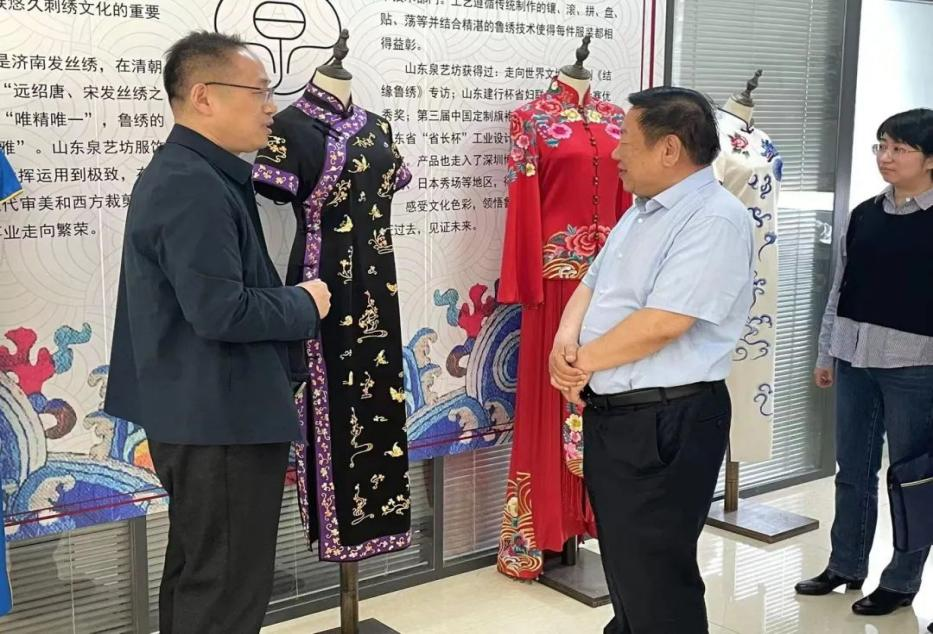 与会人员还实地参观了山东女子创业大学京东电商、齐鲁优选供应链、扎蜡染、传统旗袍、汉服、鲁绣等工作室,观摩了学生创业项目展示,了解了学校创新创业训练、项目孵化和资源支持等方面的特色教育模式。