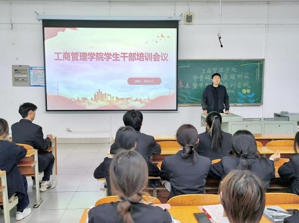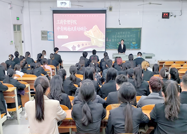 为加强学生干部的队伍建设,全力做好宣传工作,传播好学院故事,工商管理学院近期在博文楼102召开了中青网通讯员培训会暨学生干部培训会议,团总支负责老师王鹏超、全体学生干部参加了本次会议。