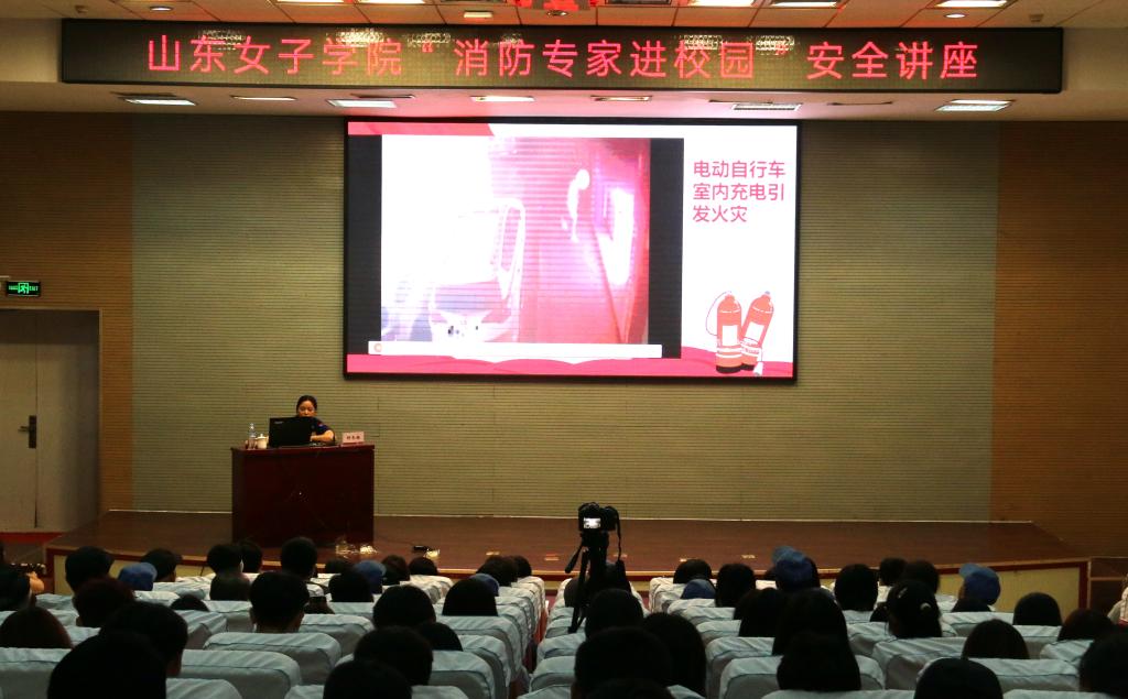 为进一步普及消防安全知识,切实提高学校师生的消防安全意识和突发火灾应急处置能力,落实“安全生产月”活动方案,确保校园安全稳定。6月15日下午,学校邀请长清区消防大队舒冬梅参谋为师生进行了一场消防安全教育讲座。共有200余名师生代表参加讲座。
