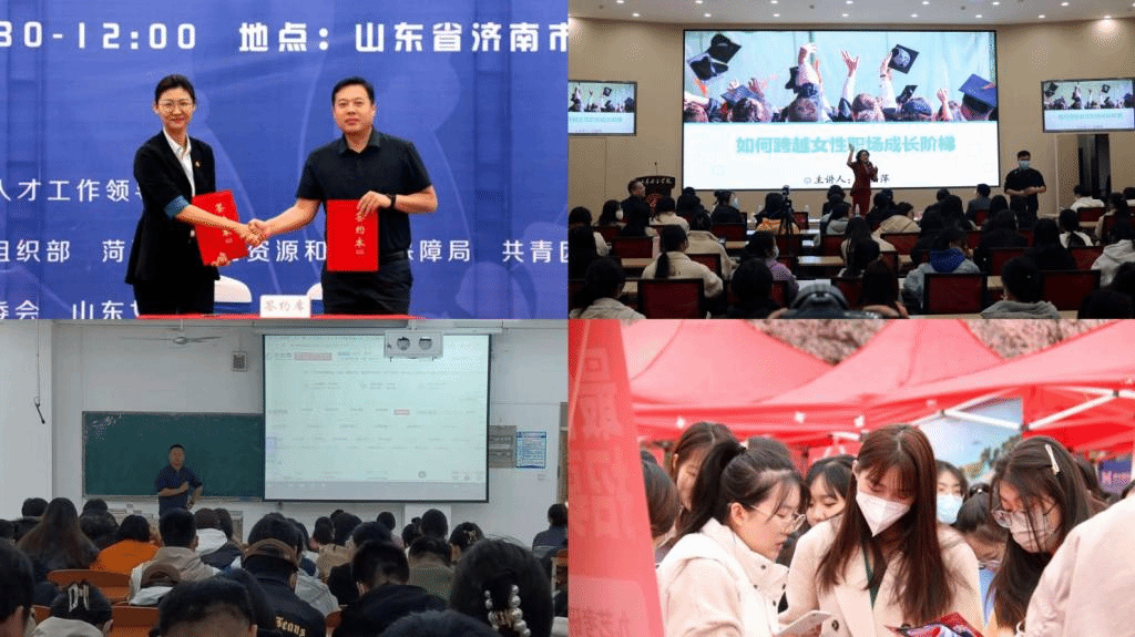 校内合作开展专场招聘会。与学校招生就业处合作,组织两场大型专场招聘会,设立青鸟送岗功能服务区、团委书记直播带岗、派出“小青鸟”志愿者助力,为省内外400多家企业和近5000名毕业生服务;校地联动合作共赢。与淄博高青、菏泽市等地签署共建协议,带领毕业生进淄博、去东平,增强对地方人次需求的了解;校企合作举办多场宣讲。校各学院团总支以产教融合的方式积极搭建毕业生与用人单位双向选择平台,开展企业宣讲百余场,校团委与三家企业新签订产学研实践基地,多措并举助力毕业生“早就业、就好业”。