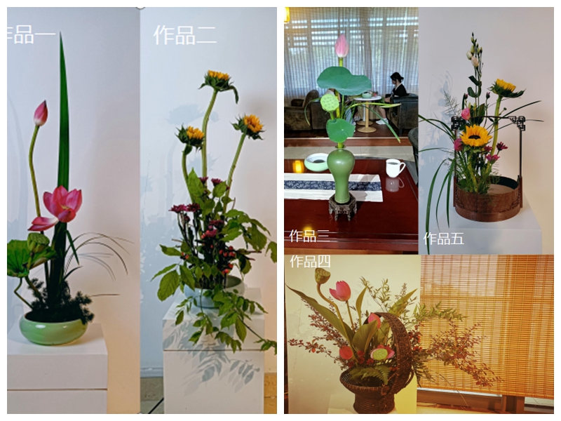 作品四“爱莲说”,采用仿宋院体篮,插作水陆草木之花,集隆盛和谐之美。