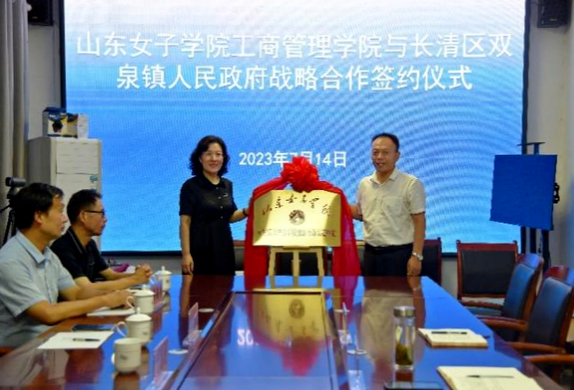 7月14日,工商管理学院与长清区双泉镇人民政府举行战略合作签约暨校地合作共建基地揭牌仪式。学校副校长刘恩允、双泉镇党委书记刘伟、镇长滕桂林出席揭牌仪式,工商管理学院党委书记王兴盈,党委副书记、院长张可成,副院长秦善勇,双泉镇副镇长李想、高庄村党支部书记贾波及学校工商管理学院部分教职工代表参加仪式。