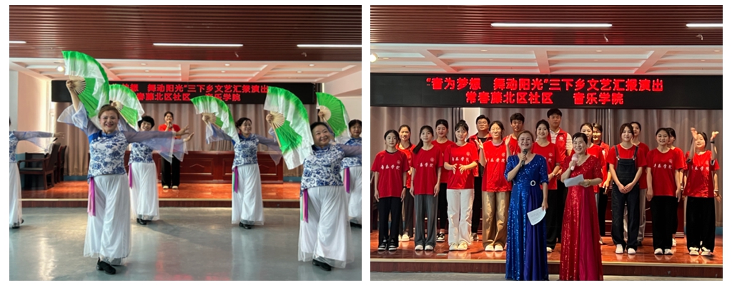 “音为梦想 舞动阳光”暑期“三下乡”社会实践服务队发挥音乐舞蹈专业优势和特长,以“尊老爱老助老”为主题,服务老人、关心老人,通过教授社区老年人学习音乐舞蹈、宣讲党的理论知识、看望生活困难居民、举办文艺汇演等多种形式的活动,丰富社区老年人的精神文化生活,营造良好的社区文化氛围。