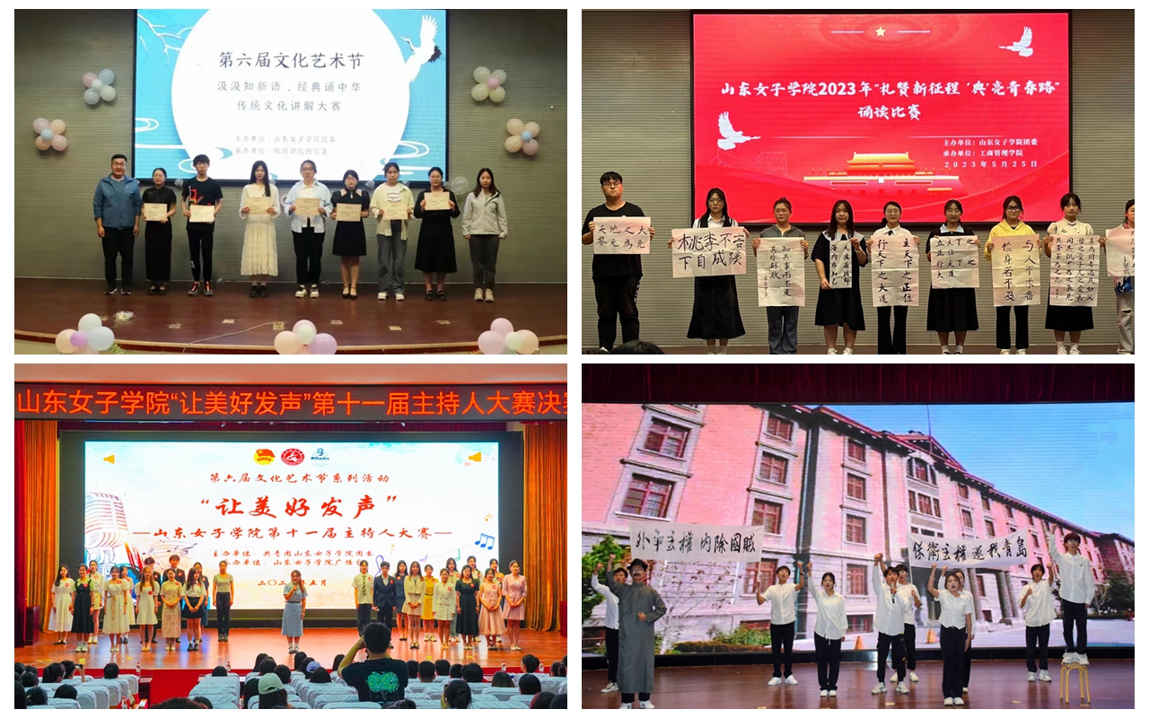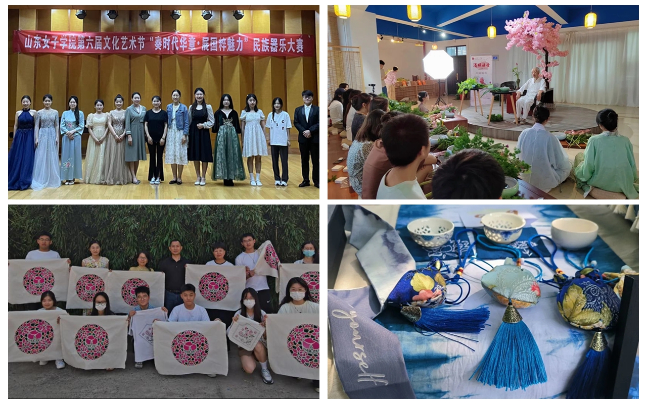 贯彻习近平总书记关于文化遗产保护的重要指示批示精神。引导广大师生感知习近平总书记对文化遗产的深厚情节,感受中华民族文化瑰宝的魅力和风采,提高艺术修养和文化素养。“中国传统彩印花布技艺”大师课邀请中国传统彩印花布传承人张继胜为200余名师生授课,不仅开阔了师生的艺术视野,激发了对传统文化的热爱,更增强了非遗保护意识和文化自信。清照讲堂——非遗插花技术体验座谈,邀请中国插花非遗传承人、国家二级花艺师乔伯良先生担任主讲嘉宾,引领女院学子在体验美、感受美的同时创造美、欣赏美,近距离体会非遗文化魅力,传承中华优秀传统文化。高雅艺术进校园活动,音乐学院俏妹艺术团167人走进曹县古营集镇中学、曹县五台山路小学、长清实验小学、长清大学城实验学校举办4场山东省教育厅高雅艺术进校园活动,进一步弘扬中华美育精神,坚定文化自信,引领学生树立正确审美观念。