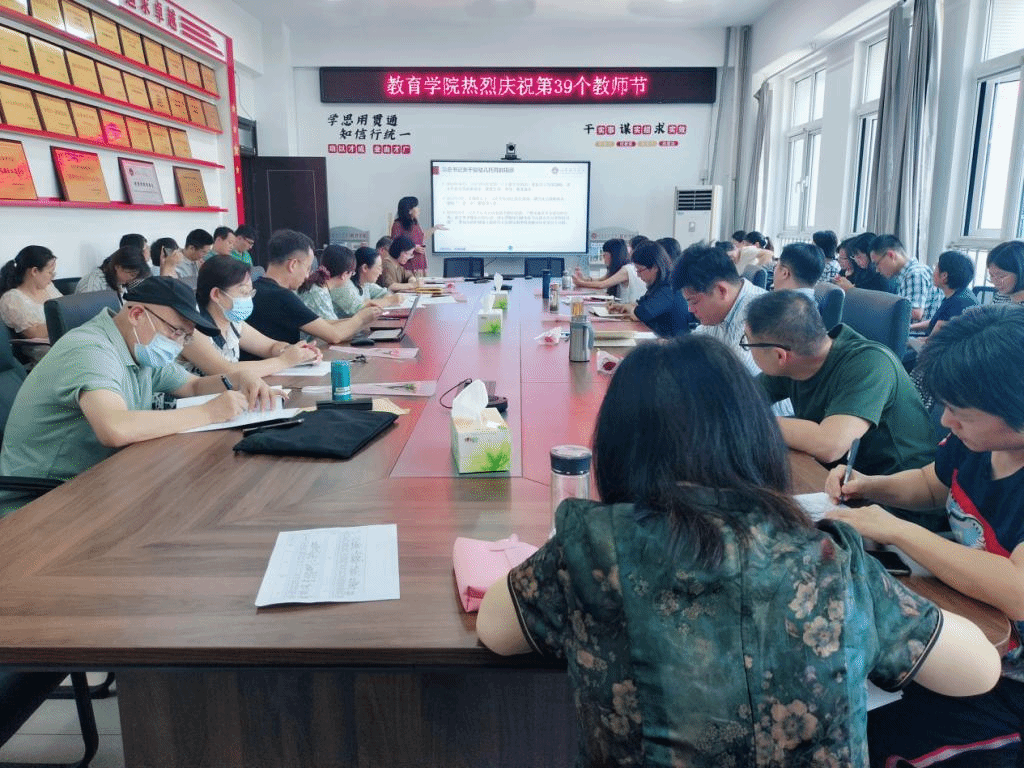 为庆祝全国第39个教师节,进一步营造尊师重教的良好氛围,9月7日下午,教育学院举行“躬耕教坛,强国有我”教师节庆祝活动,活动由学院党委书记崔江宁主持,教育学院全体教师参加。