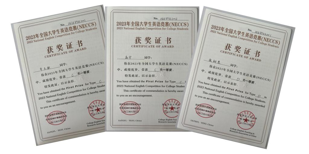 2023年全国大学生英语竞赛(NECCS)全国总决赛于8月份顺利闭幕。我校教育学院3名同学入围全国大学生英语竞赛省赛决赛,学校获优秀组织奖。