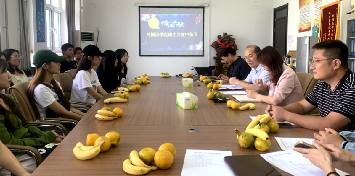 明月照他乡,相伴亦团圆。为关照好假期留校学生,9月28日,外国语学院“情满中秋”师生座谈会暨中韩学子交流会在博雅楼403室举办。学校国际交流处负责人、外国语学院院长、专业教师代表、全体辅导员、假期留校学生代表以及3名韩国留学生参加活动。