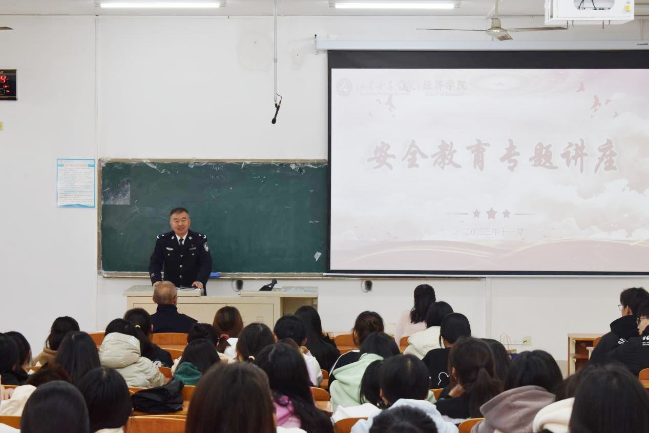 为进一步提高学生的安全防范与自我保护意识,增强学生对各类安全案件、事故的识别应对能力,11月9日,经济学院组织开展安全教育活动。邀请济南市公安局长清分局高校专班负责人、一级高级警长葛广申为2023级学生做安全教育专题讲座。