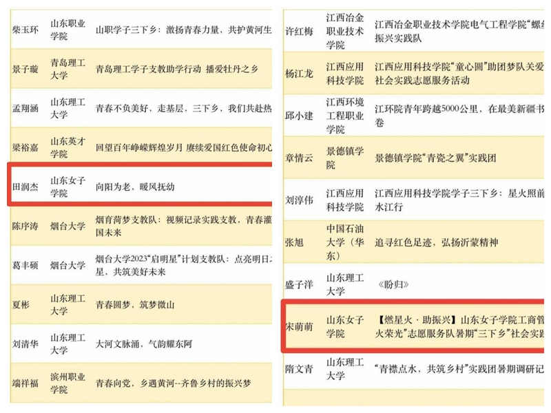 近日,由团中央指导、中国青年报社主办的2023年大学生社会实践成果“千校千项”网络展示活动评选结果公示,学校6支团队获奖,获奖团队数位居全省高校前列。其中,“爱之翼”乡村美育筑梦实践团、“社团小课堂·童心大梦想”支教团、“向日葵”志愿服务队、“美丽乡村建设”志愿服务队获得优秀项目奖,“萤火荣光”志愿服务队和“向阳为老,暖风抚幼”服务队获得优秀视频奖。