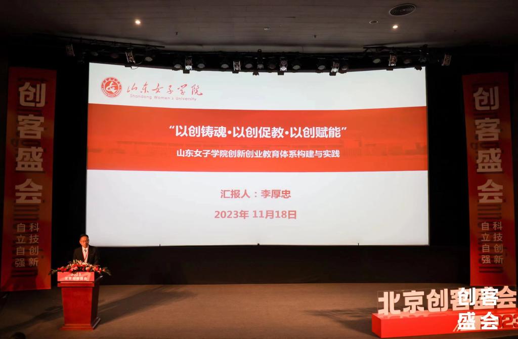 李厚忠作为论坛特邀嘉宾出席并作为首位演讲人做“以创铸魂·以创促教·以创赋能--山东女子学院创新创业教育体系构建与实践”主旨报告,介绍了学校创新创业学院突出“立德树人”根本任务,深化“育人铸魂”理念,以创新创业教育课程思政改革主线积极打造“铸魂工程”的做法,以及“四轮驱动、五链融通,六创融合”应用型本科院校创新创业人才培养模式和创业工作推进的“六全模式”。主旨报告受到了上海应用技术大学、兰州财经大学、八一农垦大学、宁波财经学院等多所高校专家学者的高度评价。