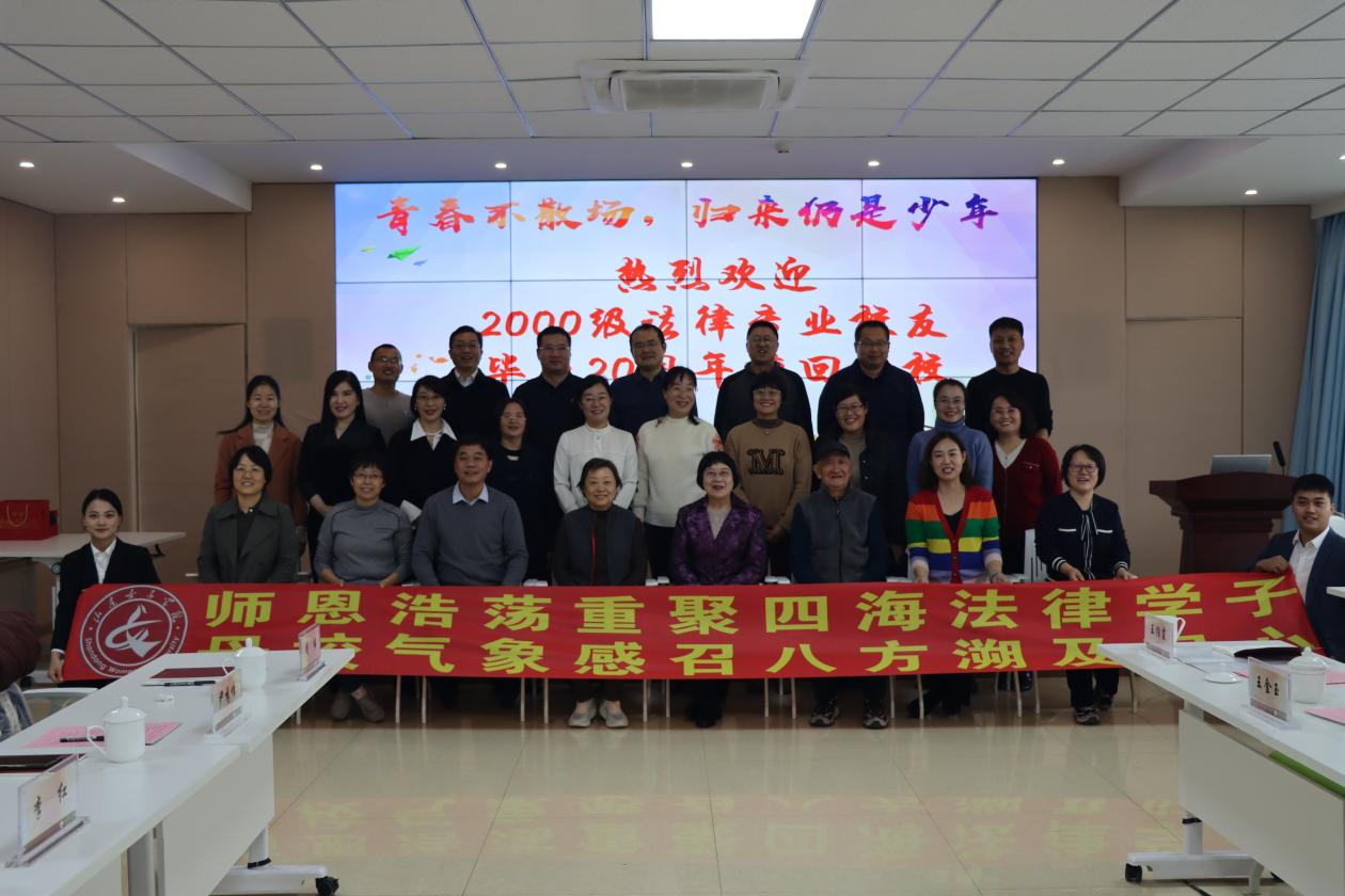 师生再度聚首,畅叙情谊,追忆往昔,寄望未来。11月26日,社会与法学院在求真楼610举行2000级法律专业校友毕业20周年返校座谈会。学校、学院退休老领导汪琦、孙启泉、张莹及校友代表,合作发展处处长于子云及社会与法学院师生参加座谈会。会议由社会与法学院党委副书记吴玉霞主持。