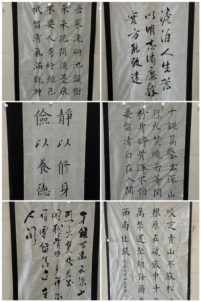 本次作品征集通知发出后,得到学院学生的积极响应和踊跃投稿,共征集廉洁主题的古今诗、词、曲、赋、联、文等体裁的硬笔、软笔以及粉笔书法作品191份,经评选,48件优秀作品参展。展出作品均主题突出、风格鲜明,所有展框全部由学院学生手工制作,将专业技能与勤俭廉洁文化巧妙结合,一撇一捺中传达了勤俭为美、廉洁为荣的价值导向。