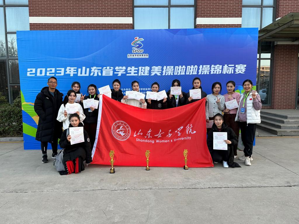 12月1日至3日,由山东省学校体育协会主办的“2023年山东省学生健美操、啦啦操锦标赛”在青岛成功举行。来自全省54个参赛单位,900余名运动员参加了本次锦标赛。学校健美操队由刘淑芬任领队,靳天学、赵敏任教练,带领12名队员参与了本次比赛。经过激励角逐,最终获得健身操自选动作自由舞蹈甲组第一名、健身操自选动作自由舞蹈乙组第一名、有氧舞蹈六级规定动作乙组第一名、集体街舞啦啦操甲组第四名的优异成绩。靳天学、赵敏荣获“优秀教练员”称号,王语晨、赵笑然两名队员荣获“优秀运动员”称号。