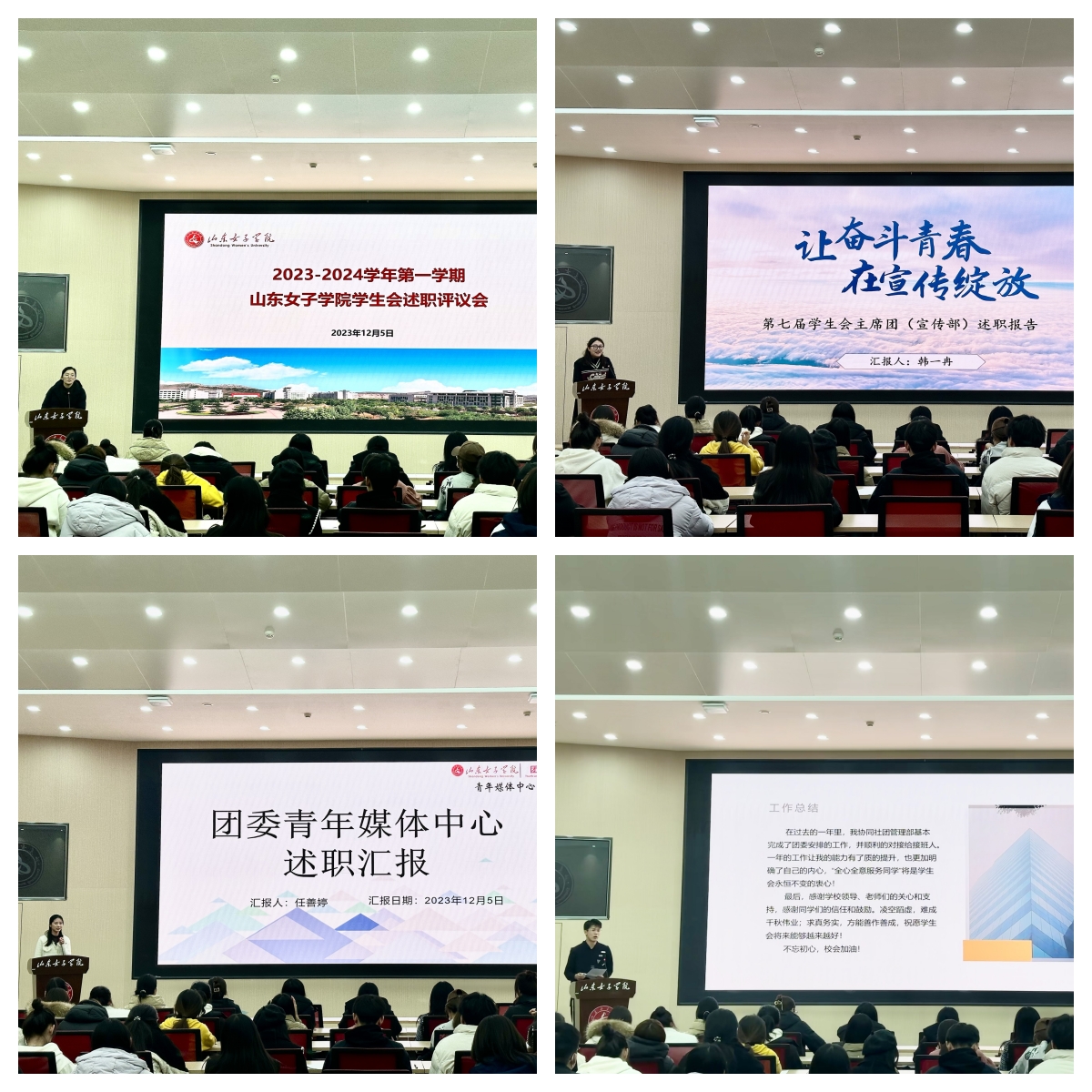 述职会上,校学生会主席团成员及各部门负责人紧扣“全心全意服务同学”的宗旨,围绕2023年秋季学期任职期间的工作做法、成果成效、不足与改进等方面进行了述职,展现出学生会成员的精神风貌和真抓实干的工作作风。校团委相关负责人对述职期内学生会的工作表示肯定。并表示,学生干部要始终加强服务与奉献意识,发挥模范带头作用,不断锤炼过硬本领。
