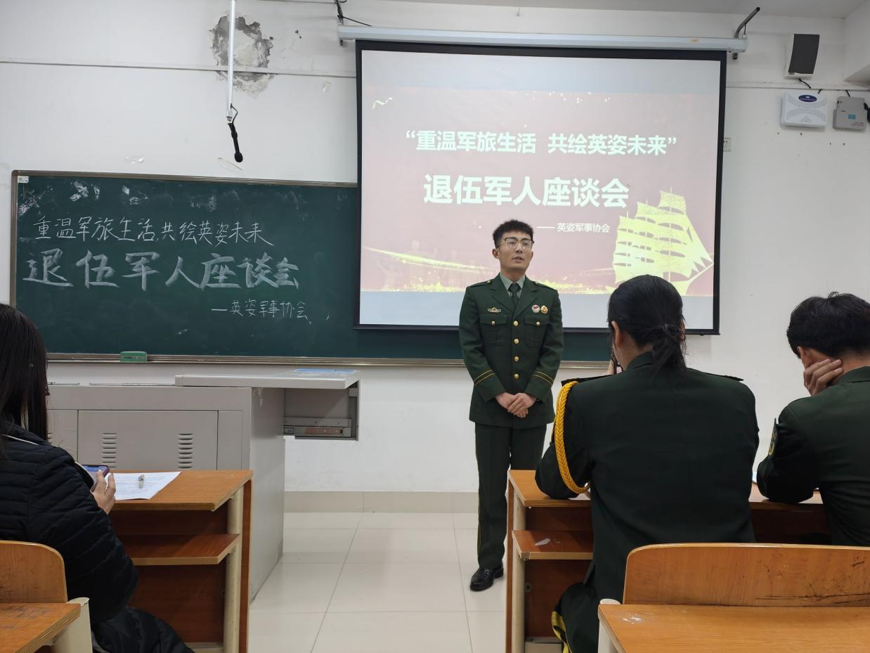 座谈会上,学校武装部相关负责人与退役复学学生交流并提出三点希望,一要做到退伍不退志,尽快完成角色转换,适应新环境,迎接新挑战;二要做到退役不褪色,永葆军人作风,争做学习标兵和道德楷模;三要做到退役不退热,紧密团结一致,勠力同心为学校的国防教育再创新功。退役复学的学生们踊跃发言,分享丰富多彩的军旅生活和个人感悟,同时也汇报返校后的思想、学习、生活的基本情况。学校英姿军事协会会长向退役复学学生介绍了英姿军事协会的基本情况并发出诚挚邀请,社团中的退役学生代表分享了加入英姿军事协会为学校师生服务的经历,鼓励更多退役复学学生加入到英姿军事协会中,共同为学校的国防教育作贡献。