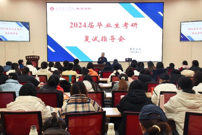 为精准开展考研复试指导,助力2024届学子圆梦考研,3月7日上午,教育学院在求真楼一楼报告厅举行考研复试指导会。特邀山东高联教育集团校长周勇担任主讲,学校招生就业处处长吕慎敏、教育学院副院长刘源、部分考研导师和考研学生参加了本次指导会。会议由教育学院党委副书记路敏主持。