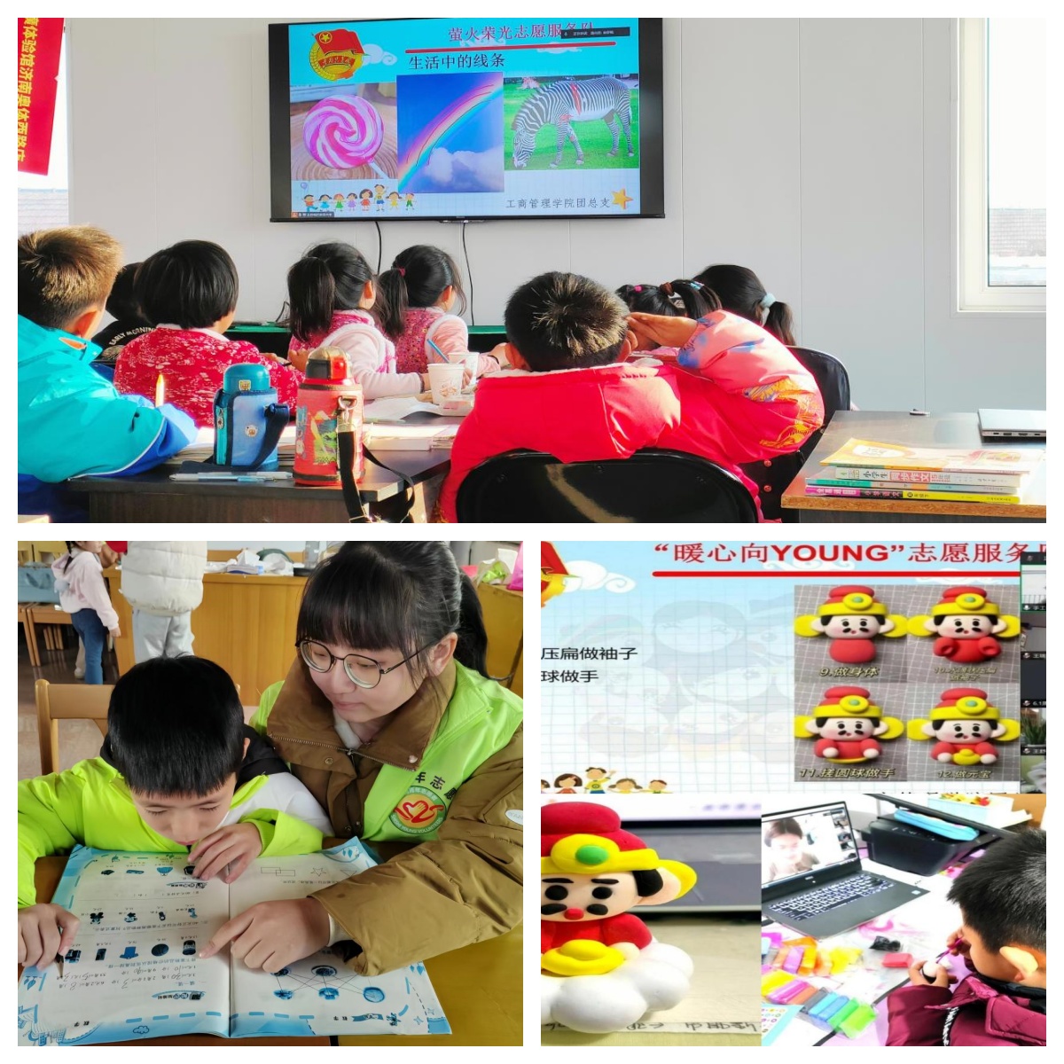 赓续文脉启新篇,云端相伴益“童”行。寒假期间,“暖心向 YOUNG” 志愿服务队、“萤火荣光”志愿服务队对接济南市市中区罗而小学以及济阳求知堂青年之家,深耕“社团小课堂,童心大梦想”支教品牌,在云端架起心灵桥梁,为传承优秀文化,赓续中华文脉贡献青春力量。在绘画社团特色课上,他们用画笔挥洒创意,用色彩点亮童年;在手势舞社团特色课上,他们以手势之名,舞心灵之美;在中英绘本故事社团特色课上,双语助成长,书香润童心;在手工社团特色课上,他们用巧手筑童年,折纸映童趣;在音乐社团特色课上,一曲《少年中国说》为少年梦、中国梦注入青春活力;在国学社团特色课上,他们用诗词为孩子们描绘画面,让中华文化熠熠生辉;在朗诵社团特色课上,他们一起《读中国》,让朗诵成为连接彼此的纽带,共同感受中华文化的独特魅力;他们一起制定运动计划表,每天按时打卡,相互鼓励监督,养成健康的习惯;他们一起阅读经典书籍,感受阅读之趣,滋养浩然之气……