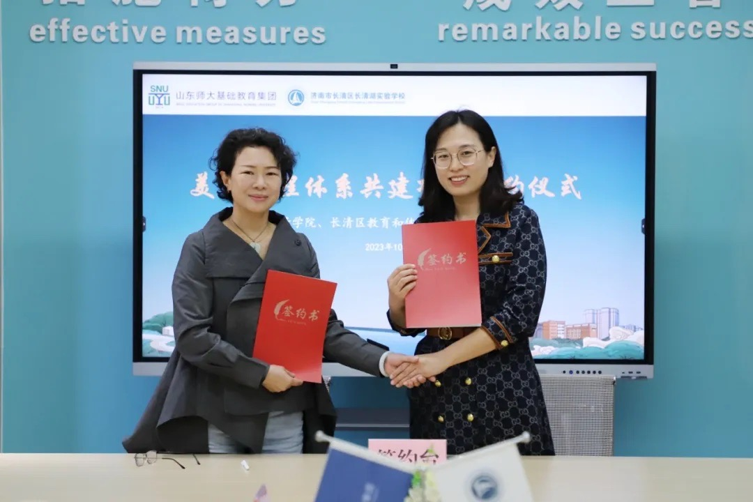 艺术设计学院响应学校“1+3+N”发展模式中服务儿童的主旨,本着立德树人、服务地方的育人理念,把学院“特色”变成“特长”,着力于创新能力培养和传统文化的传承,与济南长清湖实验学校合作共建美育课程体系,让高校先进的教育理念和美育观念走进中小学课堂,将高校资源提前、尽早渗透到基础教育阶段,充分弥补了中小学在美育教育方面的前沿理论短板,同时也为高校在基础教育课堂实践等方面的研究提供良好机会,双方互为学习和发展的平台,共育共享。