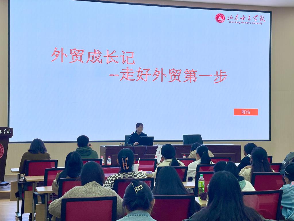 在此次开班仪式上,实验班邀请了济南华富锻造股份有限公司业务主管陈洁为与会学员做了题为“外贸成长记——走好外贸第一步”的主题讲座。陈洁结合自己十年的外贸经验,从外贸基本流程、从事外贸行业的益处、初涉外贸的注意事项和建议等方面进行了详细介绍,同时分享了自己的时间管理表和客户管理表。问答环节陈主管以学姐身份给学弟学妹们提出了专业学习的中肯建议。