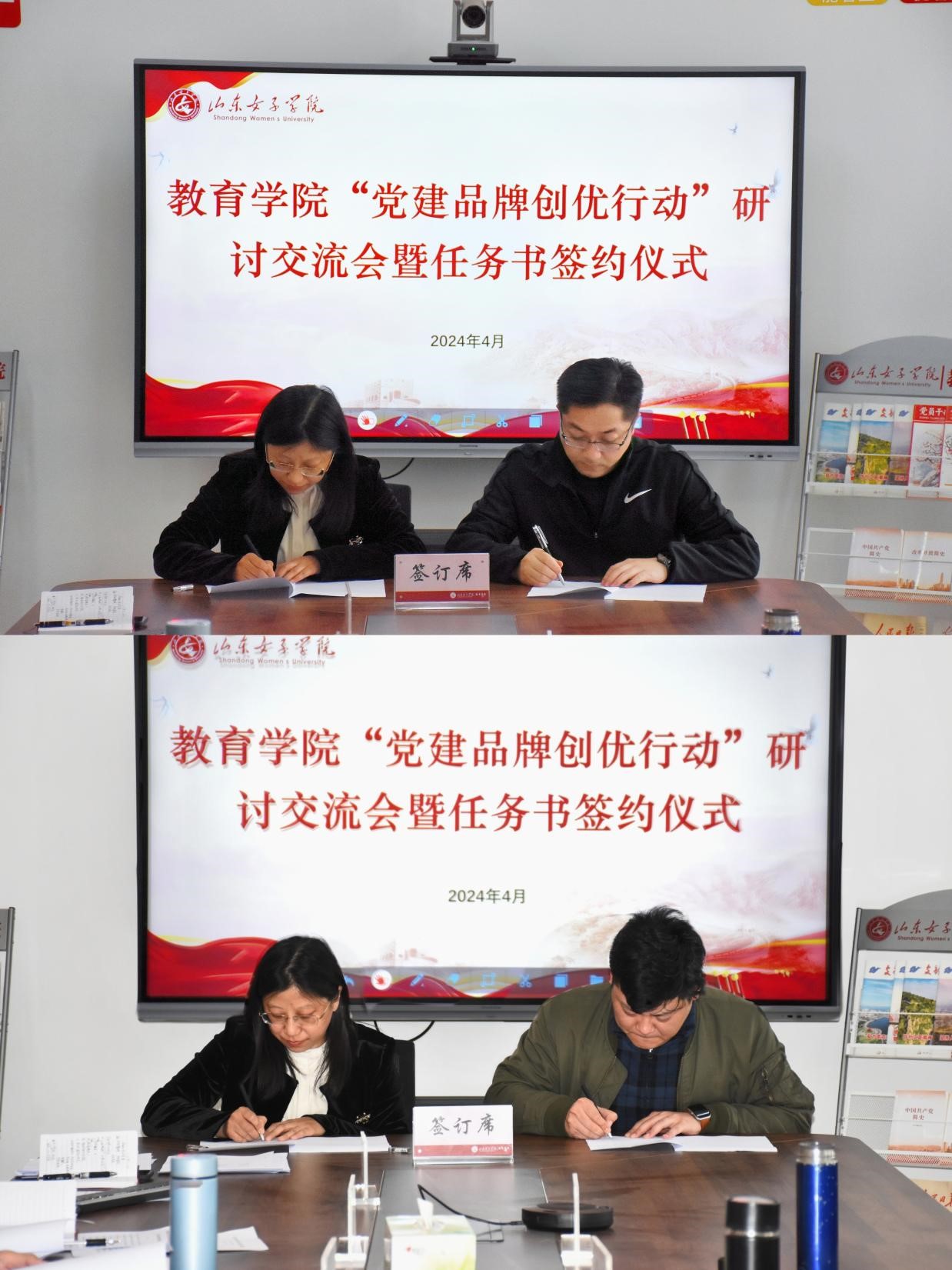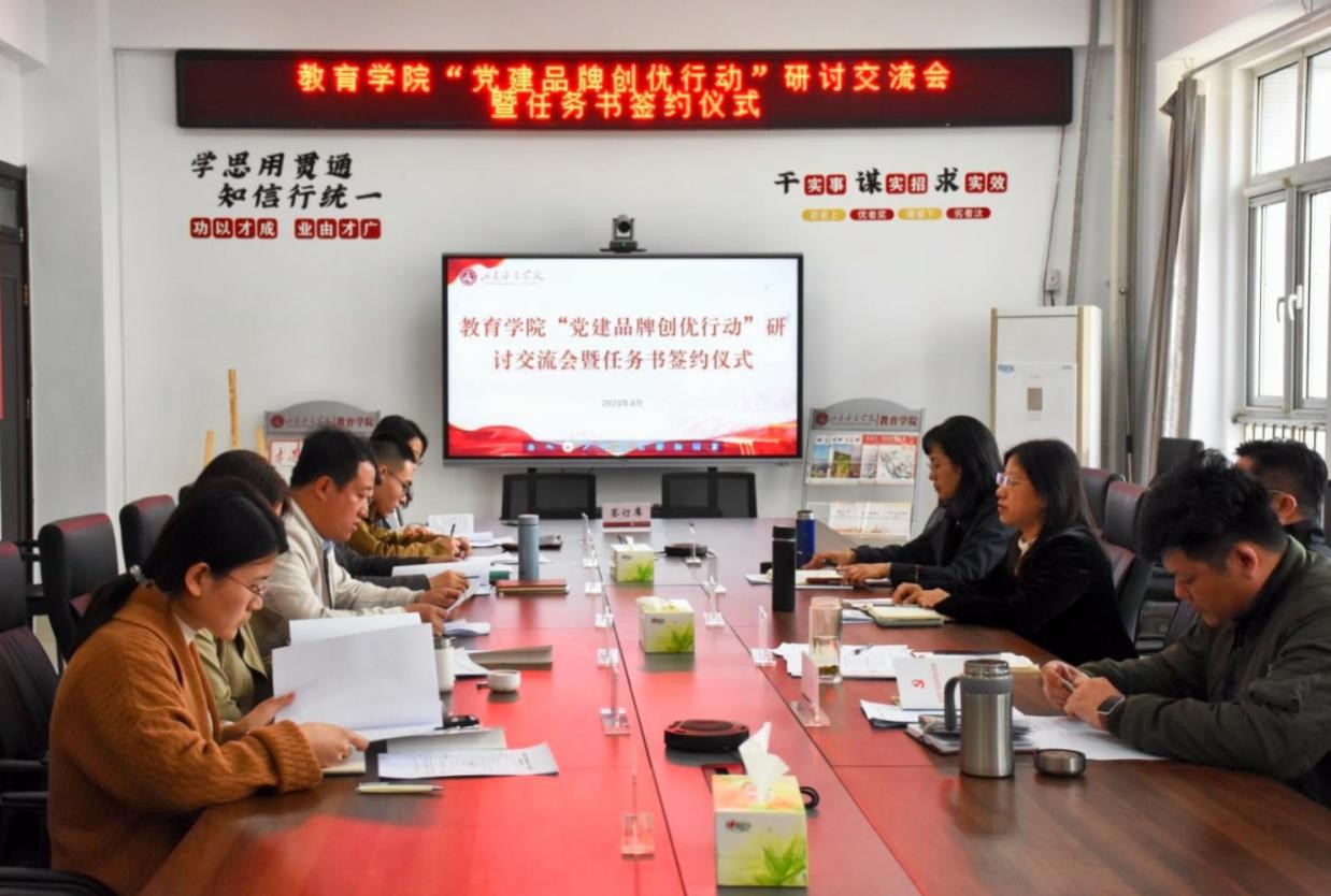 为认真贯彻落实新时代党的建设总要求和新时代党的组织路线,努力打造一批有分量、有影响、可推广的党建工作特色品牌,实现党建与业务深度融合,4月2日下午,教育学院举办“党建品牌创优行动”研讨交流会暨任务书签约仪式。学院党委书记崔江宁、副院长王飞(主持工作)、副院长刘源,各党支部书记、共产党员先锋岗、党务工作先锋参加本次会议。会议由党委副书记路敏主持。