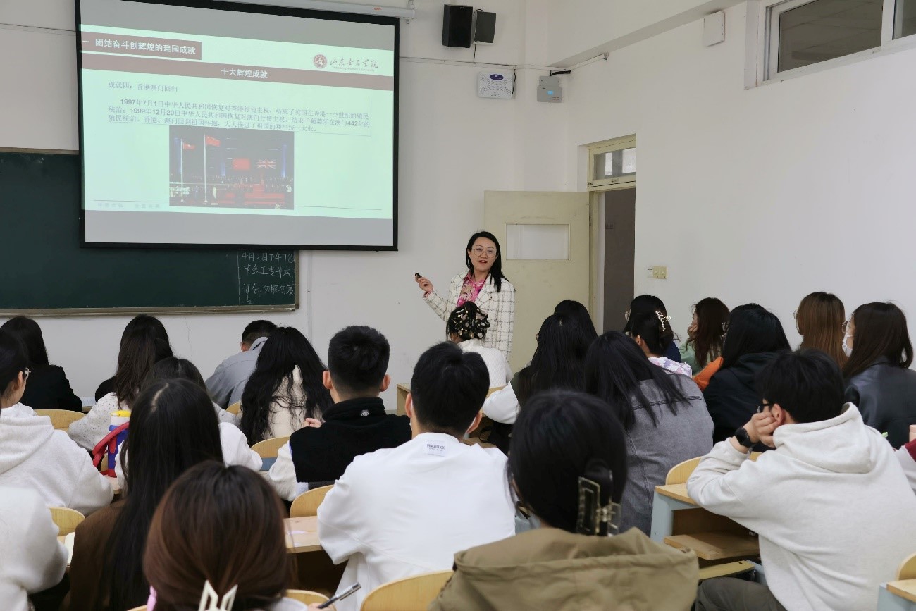 “传薪讲堂”第一期由学院党委书记孔晓晓主讲,她以“感党恩 听党话 跟党走 做新时代模范青年党员”为主题,以新中国成立75周年为切入点,围绕团结奋斗创辉煌的建国成就、从伟大成就看中国共产党的五个特质、新时代模范青年党员的养成之路等三个方面进行深入讲授,主题鲜明、内容丰富、逻辑清晰,从国家层面到个人层面、从为中华民族伟大复兴奋斗到在日常学习生活中主动发挥模范作用,既有政治的高度、又有理论的深度、更有情感的温度,旁征博引、通俗易懂,接地气、有生气,最后她寄语青年学生要心中有爱、眼里有光、肩上有责,做有情怀、有思想、有担当、有学识的新时代学生党员。让在场学生接受了一场入脑入心、深思警醒的主题教育,激发起思想共振、情感共鸣、奋斗共进。