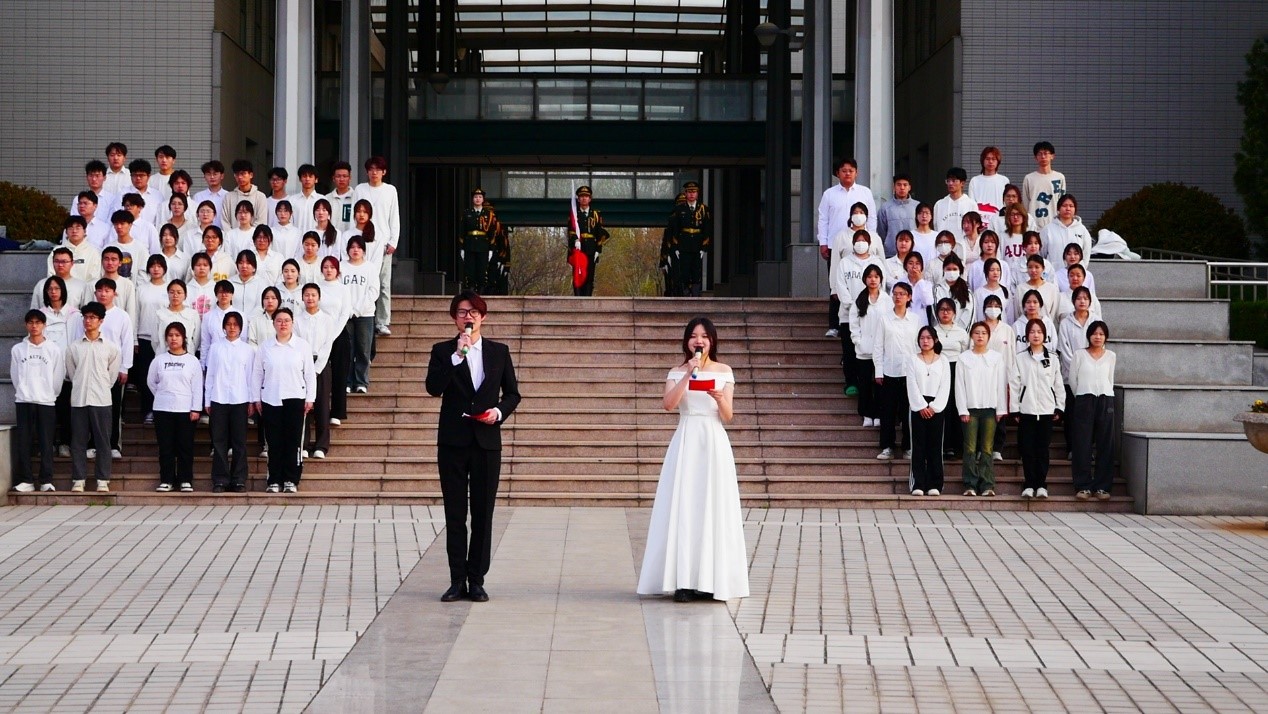 青春向党,告白祖国。"我歌唱每一座高山,我歌唱每一条河,袅袅炊烟,小小村落,路上一道辙……”同学们大声合唱,嘹亮的歌声飘荡在女院巾帼广场的每一处,活动现场洋溢着同学们爱校荣校、爱党爱国的青春气息。同学们把对祖国的美好祝愿融入到了歌声之中,以悠扬的歌声奏响新时代的华丽乐章。