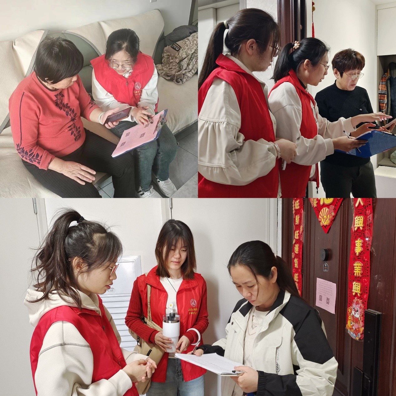 经过社区统一培训后,大家迅速投入工作状态,分小组走社入户开展居民信息统计、走访调研,同时通过线上线下方式完成信息填报,每到一户,入党积极分子们都热情大方、仔细认真,遇到不会操作的老年人时,也会耐心细致地引导,同时帮助他们做一些力所能及的事情,仅用一天的时间便完成2300余户居民的信息摸排与填报。青年学子们的自信、亲和、专业、高效得到了社区工作人员及居民的一致好评,展现了女院学子的良好风貌和青春风采。
