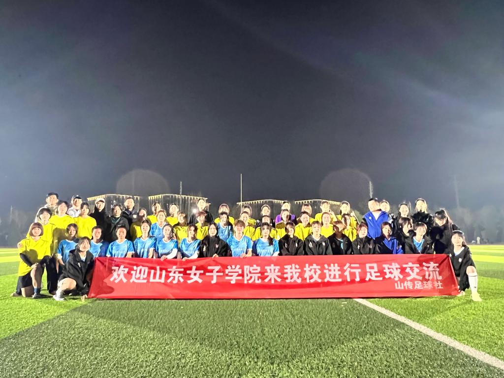 山东传媒职业学院女足是山东省大学女子高职组的冠军队伍,此次比赛配备4机位现场直播,同时可现场回看,为赛后总结提供了优质的视频素材,夜场观赛人数近千余人,大赛氛围浓厚。赛后,两校的教练和队员们进行了友好的交流,并表达了对未来合作的期待。
