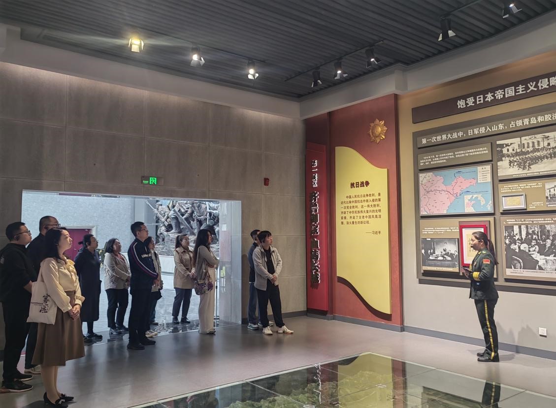 山东老战士纪念广场坐落于济南市长清区孝里街道,是“山东省国防教育基地”,也是全省唯一一处全面展示“山东兵”精神的爱国主义教育基地。师生们共同参观了“齐鲁御寇血铸长城”“向北发展向南防御”“雄狮百万转战全国”“北上南下开辟新区”“保家卫国不辱使命”“集体转业再立新功”“沙海女兵戈壁母亲”7个展厅。展陈内容采用图片、图表、实物、场景再现和多媒体终端相结合等方式,视听效果显著。通过仔细聆听讲解、驻足观看实物展陈,师生重温了从抗日战争、解放战争到抗美援朝,数以百万计的山东子弟兵为民族解放、家国安宁而血战沙场的英勇事迹,溯源红色历史,追寻红色足迹,切身感悟了山东战士们英勇善战、追求民族独立和人民解放的革命精神,锤炼了党性意志。