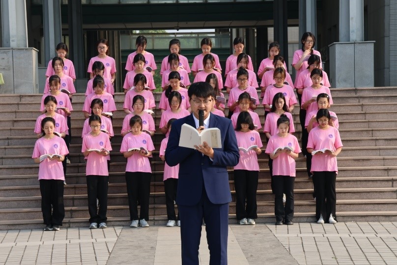 随后,学生代表王芝涵以《一路青春,书香相伴》为题进行国旗下演讲,她号召学生积极行动起来,将读书变成一种伴随终身的良好习惯,挂阅读之风帆,济书籍之沧海,与书香为伴,以知识为友,成为“腹有诗书气自华”的新时代青年。