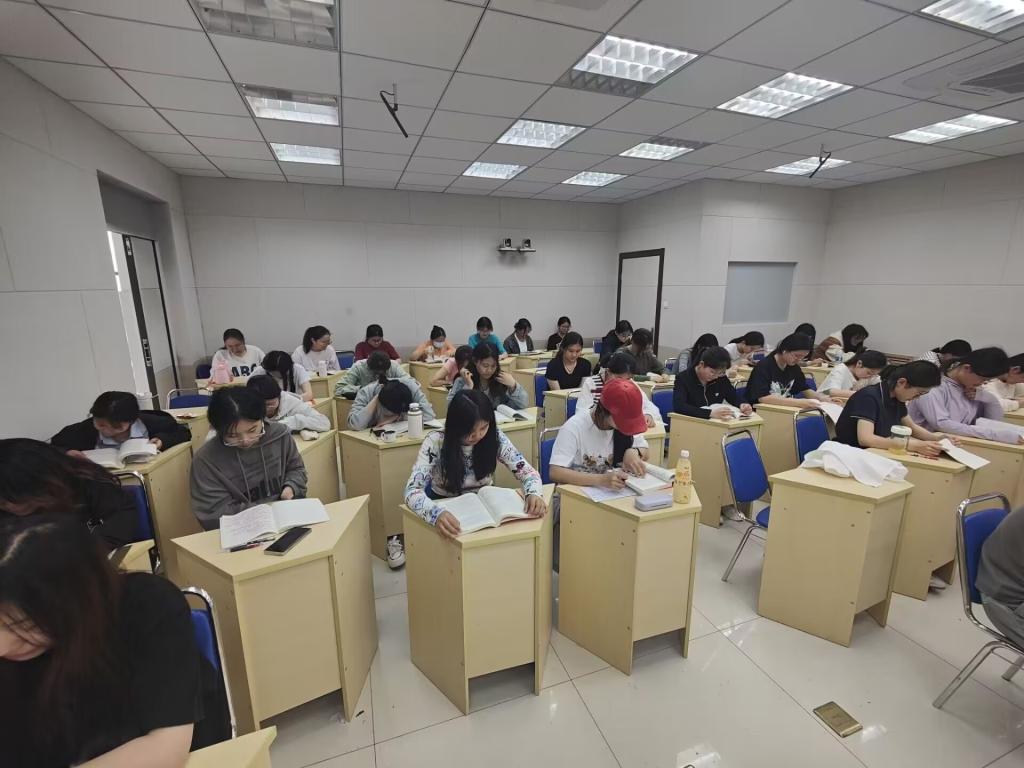 共读活动于4月22日下午正式开启,全校共设置了近200 个共读点,分布于图书馆、教室、草坪、休闲椅以及宿舍等校园各个角落,吸引了近万名学生参加。同学们在不同地点,或坐或立,或独自阅读,或相互讨论,或低头沉思,或高声朗诵,共同沉浸于书海之中,享受阅读乐趣。研读经典红色文献成为了同学们共读图书的一种新风尚,会计学院40名学生代表在图书馆楼前齐声诵读《习近平用典》,共同感悟中华文化的影响力和凝聚力。