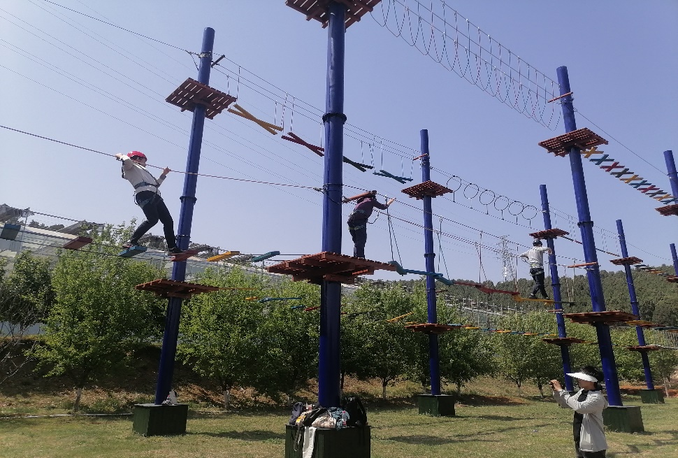在其他拓展项目攀岩、绳网穿越等团建活动中,通过挑战个人极限,团队成员之间的相互配合,增强了教职工克服困难决心和勇气,培养了团队成员间的互信和默契,增强了团队凝聚力。
