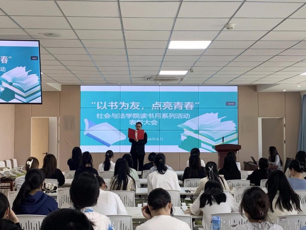 翰墨流转,书香沁人。为迎接第29个“世界读书日”,引导学生养成“爱读书、读好书、善读书”的习惯,社会与法学院面向全院学生开展为期一个月的“以书为友,点亮青春”读书月系列活动,4月26日于求真楼610召开表彰会。