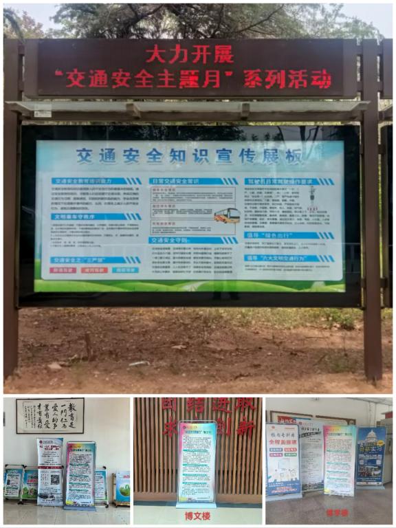 学校通过严格落实外来车辆登记管理制度;开展保安人员和大学生安全自治委员会志愿者对校内各条道路、师生密集活动区域进行巡逻检查;制定安全应急预案,落实专人监督驾驶行为,加强集体活动交通安全管理;组织会议、主题班会、集中观看宣传片、发布倡议书、开展应急处置演练等形式,开展“交通安全宣讲月”“交通安全知识有奖竞答”“交通安全书法比赛”“交通安全绘画竞赛”等丰富多彩的弘扬校园交通安全文化系列活动,“教育提醒再强化,网格责任再压实”,营造浓厚的校园安全文化氛围,为同学们的安全出行保驾护航。