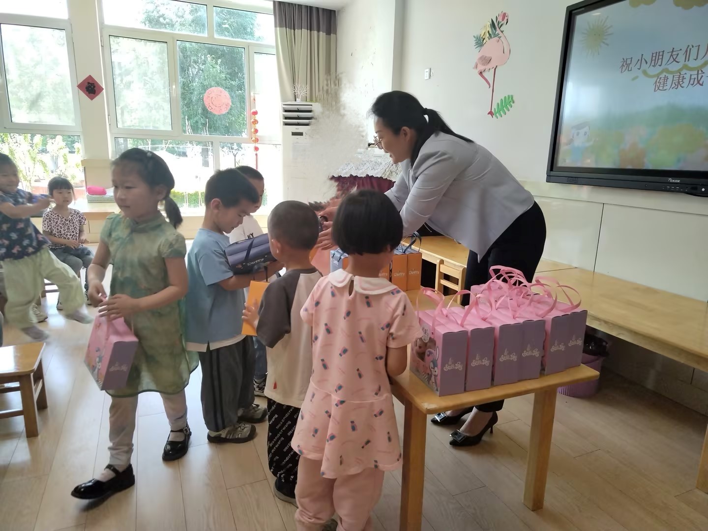 孔晓晓用生动的语言为孩子们讲述了习近平总书记对新时代中国儿童的殷殷期望,鼓励他们要爱党爱国、热爱学习、团结友善、坚强勇敢,做德智体美劳全面发展的好儿童。最后她为孩子们发放了节日礼物,送去了节日祝福。