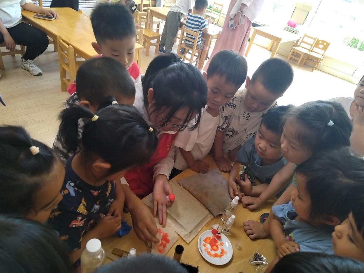 中华优秀传统文化是中华民族的精神命脉,非遗文化更是博大精深。为了让孩子们感受优秀传统文化的魅力,锻炼想象力、创造力和动手能力,会计学院将拓印这古老的传统技艺带入了课堂之中。学生志愿者耐心细致的讲解了什么是拓印技艺,展示了不同种类的拓印艺术品,并进行现场制作,让孩子们亲身体验。孩子们被这“神奇”技艺所吸引,争先恐后的围在一起,好奇而又喜悦到投入到制作中。随后学生党员与孩子们进行了互动游戏,与他们度过了一段快乐的时光。