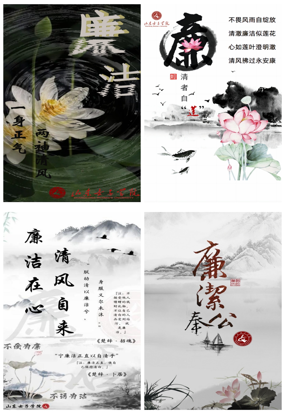 学院党委充分调动全院党员师生积极参与,结合廉洁故事、廉洁榜样、廉洁诗句等多种形式开展海报设计,在此次活动中的各类作品极具创意,征集的作品围绕“廉洁”主题,内涵丰富,主题明确,各具特色,共征集作品近百份。