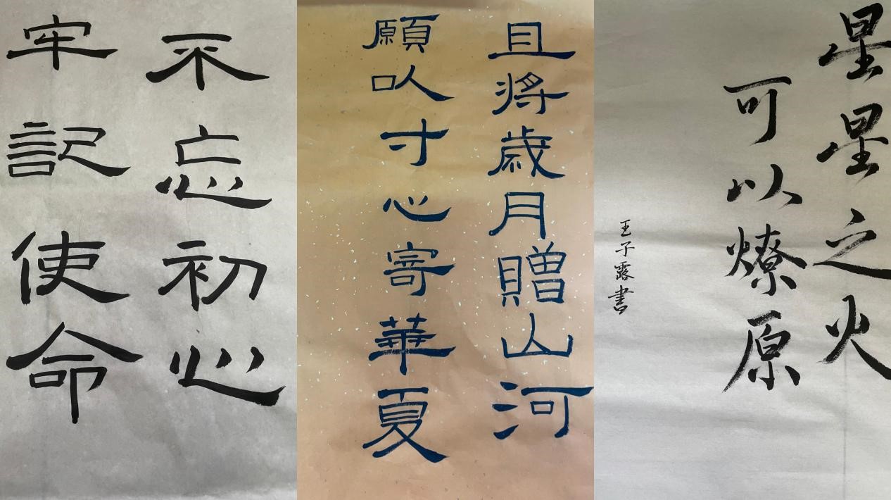 学院开展“红色主题书法展”活动,师生们纷纷挥毫泼墨,用毛笔书写下“星星之火 可以燎原”等红色经典名句。每一副作品都饱含着对党的热爱。通过书法艺术的表现形式,传承和弘扬红色文化,激发广大师生厚植家国情怀,筑牢理想信念之基。