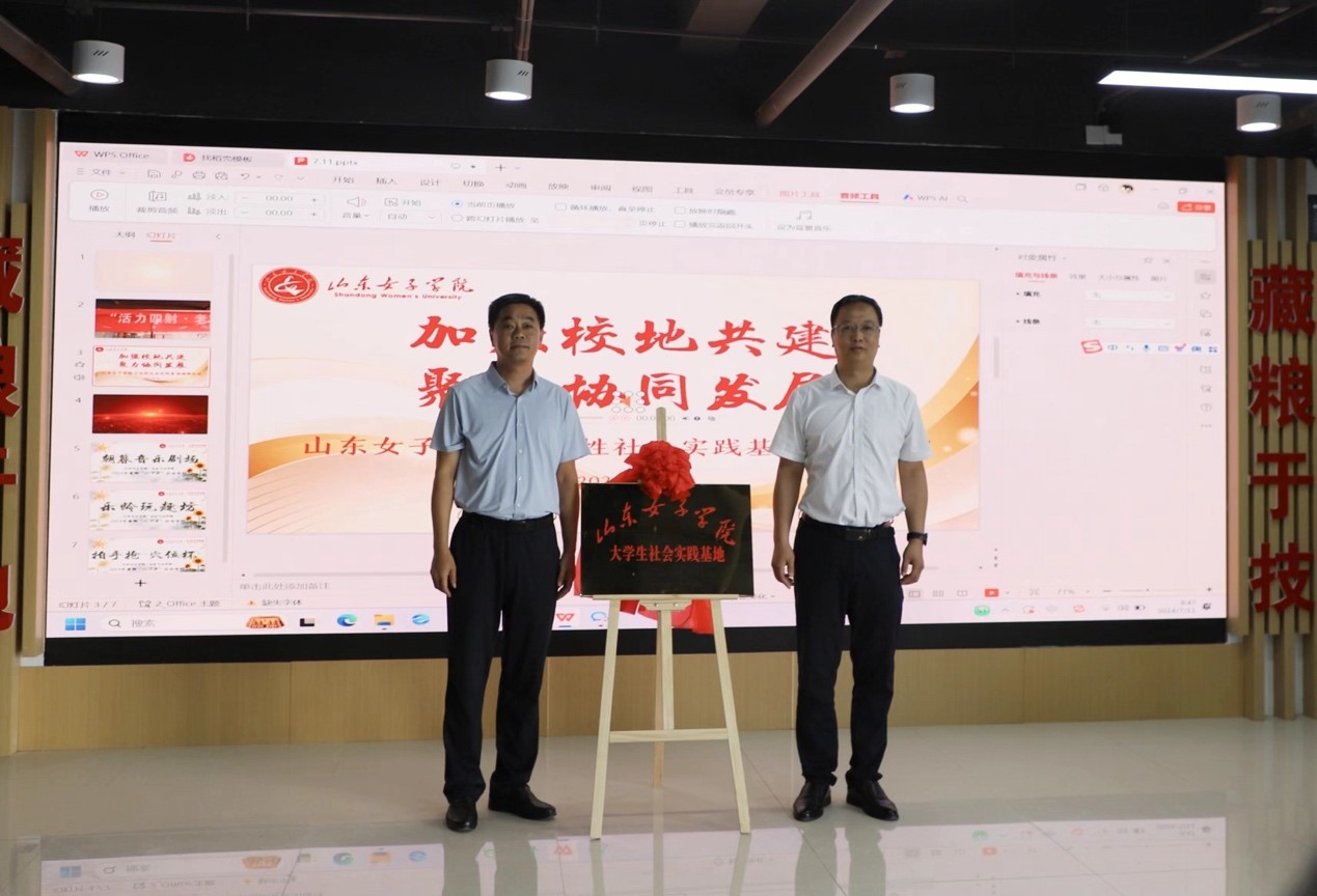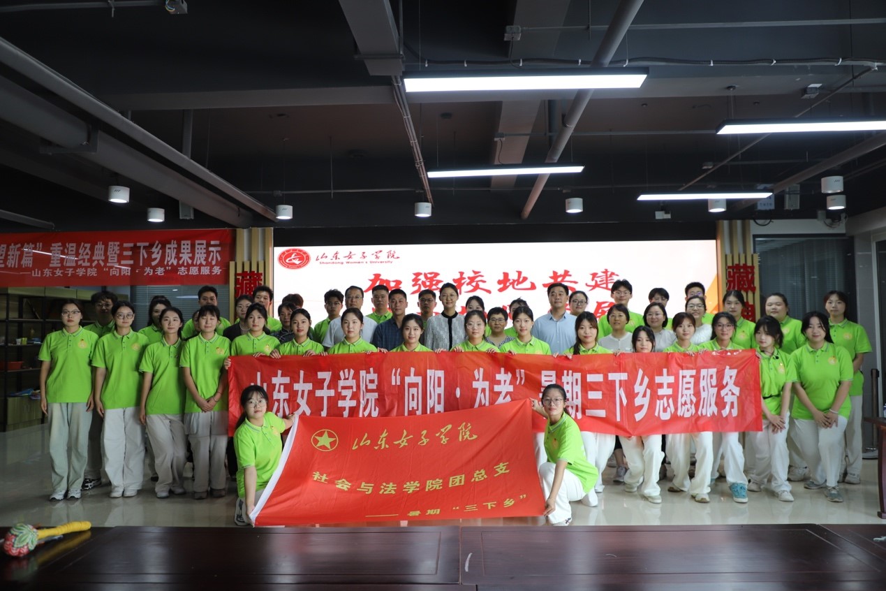 为进一步结合和利用校地资源,深入实施“时代新人铸魂工程”,引领教育广大青年学子勇担时代重任,7月11日上午,社会与法学院联合长清区归德街道隆重举行校地共建揭牌仪式。区妇儿办主任韩玉晶,团区委副书记李广彬,学校团委书记苏婧、社会与法学院党委书记杨洋、党委副书记吴玉霞,山东女子学院“向阳为老”志愿服务队指导教师,街道党工委副书记张孝峰,副主任张婷、党建工作办公室相关负责同志及“向阳为老”志愿服务队成员参加仪式。