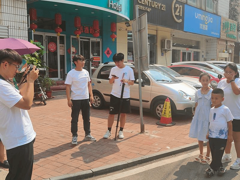 图为“E初心”星火点点志愿服务队进行反诈骗宣传片拍摄工作