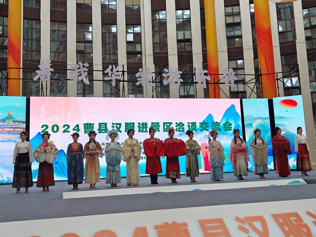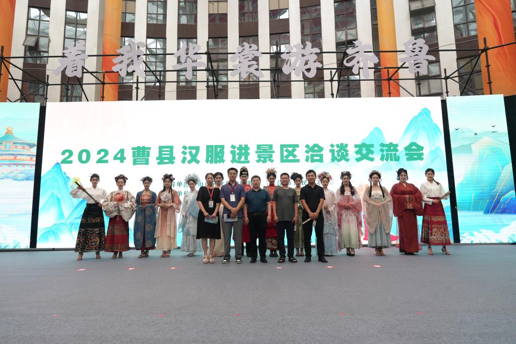 近日,受菏泽曹县电子商务中心的邀请,艺术设计学院党委书记董玉新、党委副书记曲常军、副院长赵崇立带领服装与服饰设计专业负责人郭静、教研室主任霍建强及17名学生前往汉服之乡——菏泽曹县参加“着我华裳游齐鲁”2024曹县汉服进景区洽谈交流会。