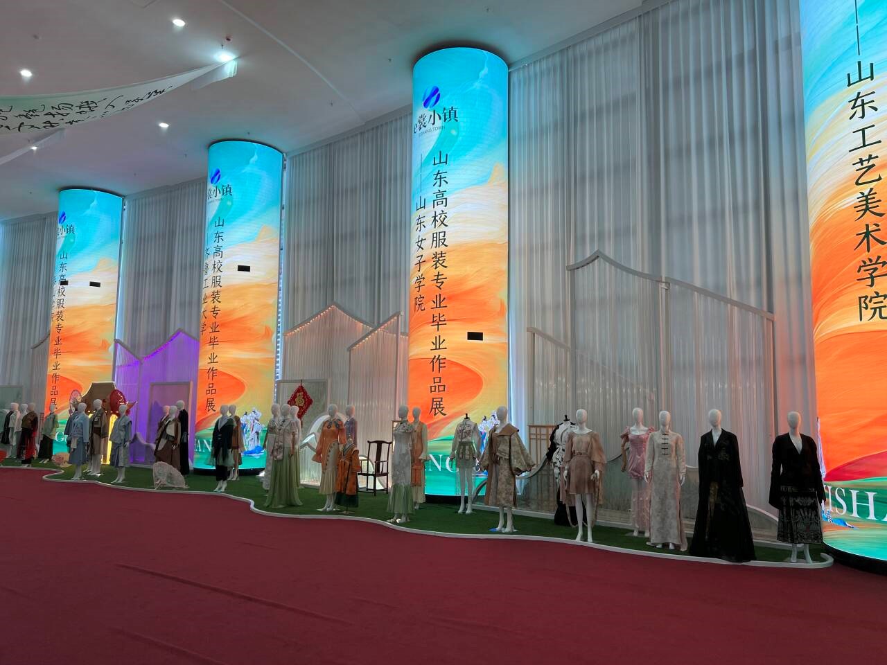 学院师生首先参观了在菏泽曹县e裳小镇展示的20余套2024届艺术设计学院服装与服饰设计专业毕业生的毕业设计作品。本次受邀展示的毕业设计作品包含女装设计、童装设计等多个品类。展现了学院服装与服饰设计专业在传统服饰设计特色方向开展的优秀教学成果,也进一步体现了专业围绕学校办学特色定位及地服务方经济发展需要,凝练专业特色发展的办学理念。